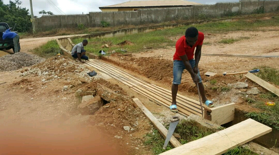 Reconstruction of broken box culvet decken on river Ashire on Wassa Akropong Saamang feeder road.